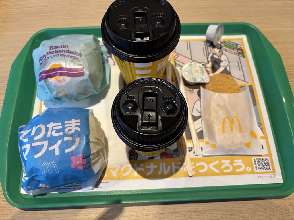 ホテルを出発したのが7時前。マクドナルドに寄って500円位の朝マックを注文して食べました。