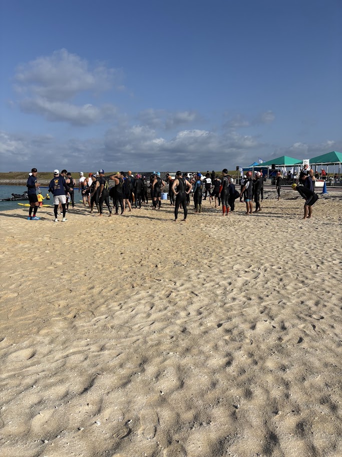 8時半から試泳が開始。タイム水がめちゃくちゃ冷たい。人数は30人ぐらいか外国人もいました。1番最後からスタート。泳ぎはじめてしばらくして、僕の前を泳いでいた方がリタイヤされました。